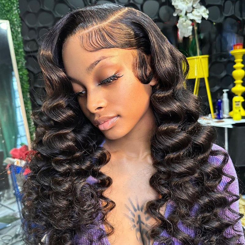 Morketic HD Lace Double Drawn Loose Wave 13x4 Lace Frontal Natural Black Human Hair Wig Free Part